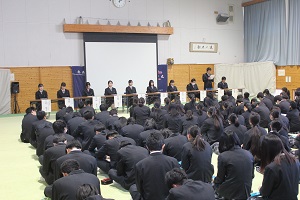 2月19日(水)6・7限に、園芸科・家政科1・2年生を対象とした、3年生からの進路アドバイスが開催されました。進路が決定している3年生の代表10名が、就職・進学それぞれの立場から進路実現に向けて取り組んだ内容や心構え、在校生へのアドバイスなどを語りました。1・2年生は、先輩方が語った内容をメモしながら、今後の進路決定に向けてこれからの高校生活をどのように過ごしていくかを考える充実した時間となりました。