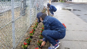 【地域生活科2年グリーンライフコース】校内花壇に花を植えました。地域生活科 / 2022年5月13日 5月13日(金)、地域生活科2年グリーンライフコースの生徒が「草花」の授業で南校地グランド横の花壇に草花の定植をしました。授業で花壇のデザインを考えました。今回使用した草花は、サルビア・日々草・トレニア・ポーチュラカです。