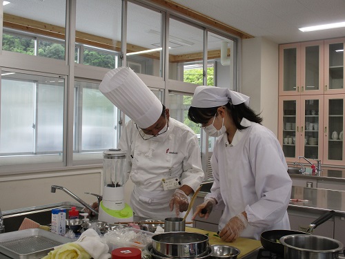 【地域生活科ヒューマンライフコース3年生課題研究「食物」】外部講師授業「西洋料理」ヒューマンライフコース / 2023年7月24日 令和5年7月13日(木) 地域生活科ヒューマンライフコース3年生、課題研究「食物」選択者が食物調理技術検定1級に向けて「西洋料理」の外部講師授業を受講しました。 食物調理技術検定では、90分で5品のフルコースを作ります。講師の先生に実際に作ったものをみていただき、それぞれのフルコースがより素敵なものになるよう、アドバイスをいただきました。また、今年度の指定調理であるホワイトソースのきれいな仕上げ方と、ホワイトソースを作ったグラタンもご指導いただきました。 1級検定に向けて、専門的な技術をさらに磨くことができました。<講師>穴吹調理製菓専門学校 宮脇 隆泰先生