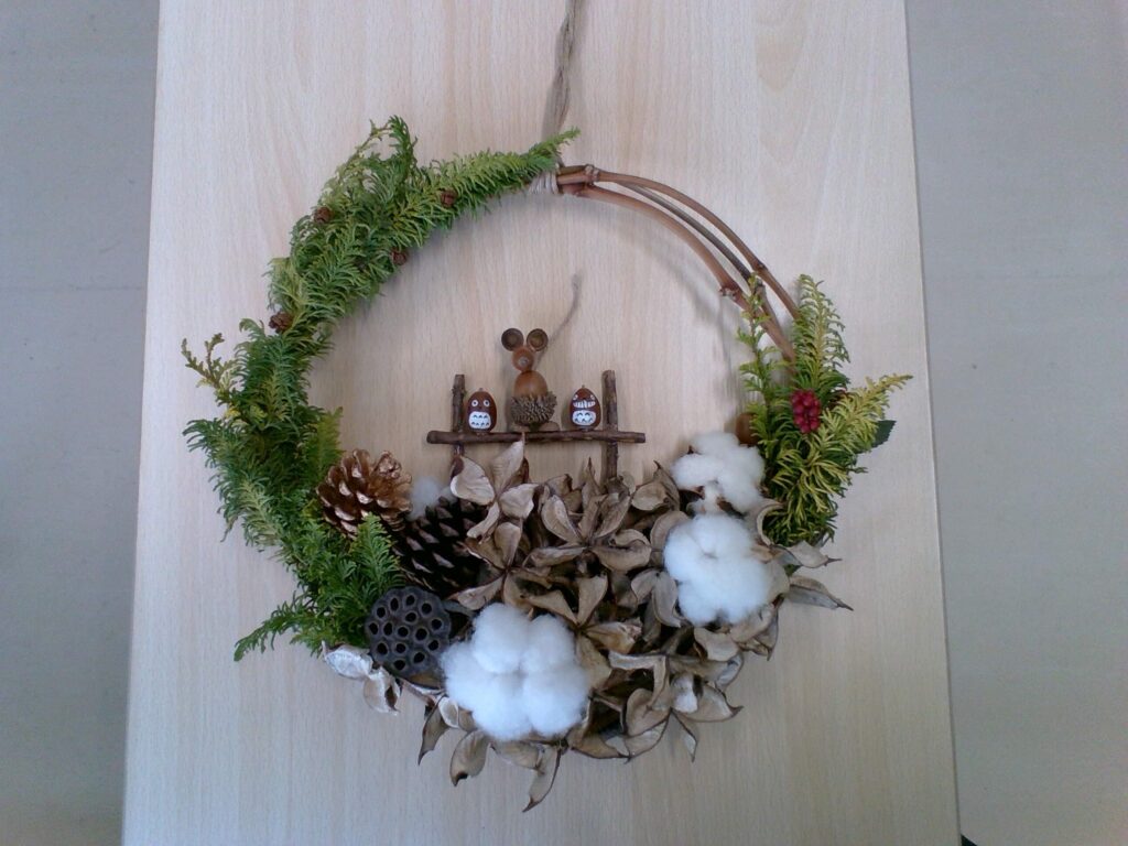 【地域生活科3年・普通科3年総合進学類型】綿のモニュメントとリースの展示3年生, 普通科, 地域生活科 / 2023年12月1日 12月1日(金)今日から12月です。井原高校では地域生活科3年生が学校設定科目「地域生活」、3年普通科総合進学類型の生徒が「生物活用」でそれぞれ作成した綿のモニュメントとリースを本校の玄関に展示しました。本校圃場で栽培された綿や精研農場で収穫されたブドウのつるを利用し、作成しました。井原特産の綿や綿ガラも利用し、学校のクリスマスムードが高まりました。