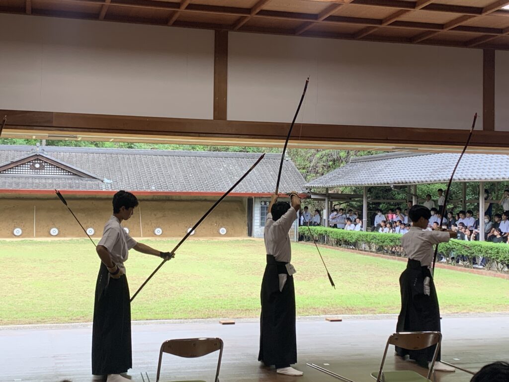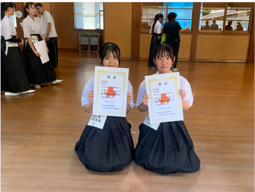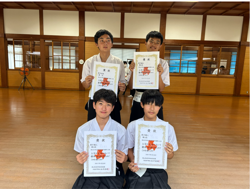 【弓道部】令和7年度県新人大会結果報告弓道部 / 2025年9月28日 9月27日(土)、28日(日)に井原市与一記念弓道場にて令和7年度県新人大会が行われました。秋風の吹く気持ちの良い天気のなか、岡山県内にある30校以上の学校が一堂に会し、試合に臨みました。 【結果】 女子個人の部 第6位 2B藤井 愛奈(井原中) 第10位 2D 佐藤 菜生(高屋中) 男子個人の部 第2位 1B中濱 敬土(里庄中) 第5位 1D山崎 千歳(里庄中) 第6位 2B井上 貴人(高屋中) 男子団体の部 👑第2位 1A福原 大登 1B中濱 敬土 1D山崎 千歳(3人ともに里庄中) 1年生男子団体 1年生女子団体もデビュー戦 左から2年藤井 愛奈、佐藤菜生 右上 2年井上 貴人、左上から反時計回りに1A福原 大登、1B中濱 敬土、1D山崎 千歳 結果は上記のように多くの選手が入賞することができました。特に男子団体の部では決勝戦での同的中からの1本競射で1本差で敗れるという劇的な幕切れでした。まだ1年生ということもあり、今後の活躍に期待です。上記の入賞した生徒については11月14日(金)〜16日(土)に島根県出雲市で行われる中国新人大会に出場することが決定しました👏 応援よろしくお願いします。 また、この日は会場校が井原ということもあり、役員の生徒も頑張って仕事をこなしてくれていました。たくさんの先生から「井原の子は愛想が良くて、よく気の利く子が多いですねぇ」とお褒めの言葉をいただきました。大会を支えてくれている役員の生徒にとても助けられた大会でした。 今回の結果に満足せず、心身ともにもっと高みを目指して練習に励んでいきたいと思います。今後とも井原高校弓道部をよろしくお願いします。