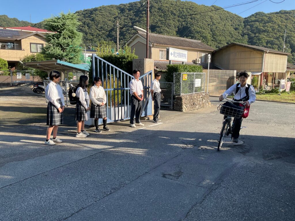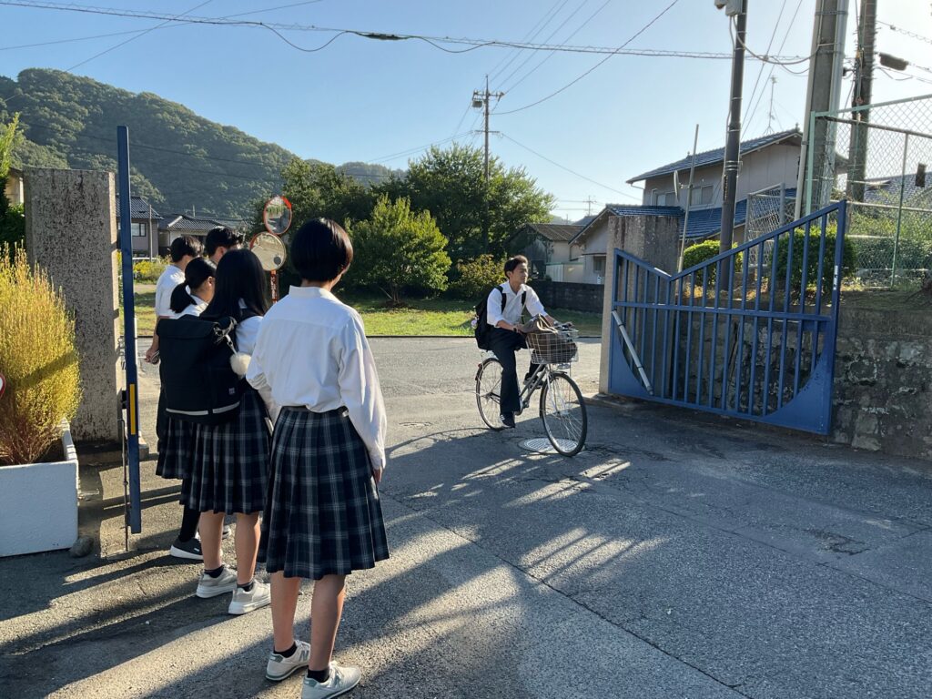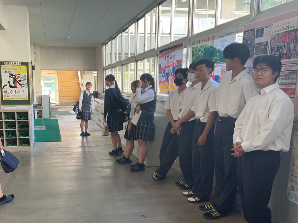 あいさつ運動&交通立ち番1年生, 2年生, 校内風景 / 2025年10月17日 10月16日(金) 井原高校では各委員会の生徒が中心になって月に一度「あいさつ運動」を実施しています。 今回は保健委員会のみなさんが朝8:15〜8:35の20分間、登校中の生徒へあいさつを行いました。 同時刻に自転車の交通量が多い地域で教員による交通立ち番を実施しました。