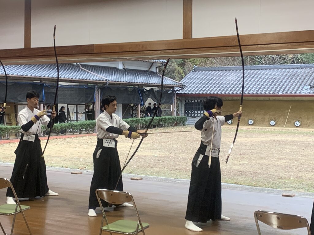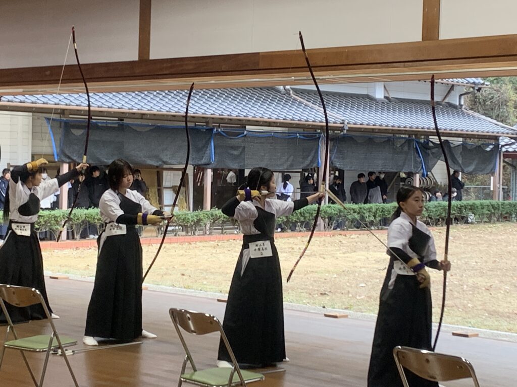 【弓道部】1年生大会の結果報告弓道部 / 2025年12月14日 気温4℃の寒空のもと、12月13日(土)に1年生大会が行われました。県内の1年生のほとんどが参加する大会で、井原高校の選手たちも自分たちの腕を競い合いました。 結果は女子個人第2位で1B 安井優里さん(井原中)、男子団体第2位で1A 福原大登くん、1B 中濱敬土くん、1D 山﨑千歳くん(3人とも里庄中)が入賞しました!緊張感もあるなか1年生ながらも堂々とした弓が引けていました。その他の選手も良い射ができたり、係の仕事に貢献したりと大活躍でした。 弓道は1年生大会での勢力図と3年生の最後の大会である県総体での勢力図は大きく変わります。この結果に慢心することなく、日々地道に努力を続けていきます。 これからも井原高校弓道部をよろしくお願いいたします。 男子団体 女子団体