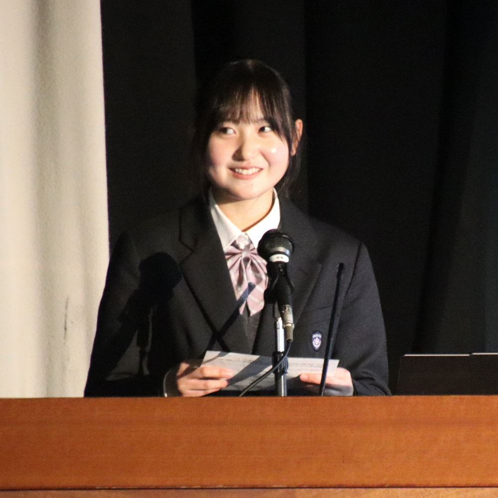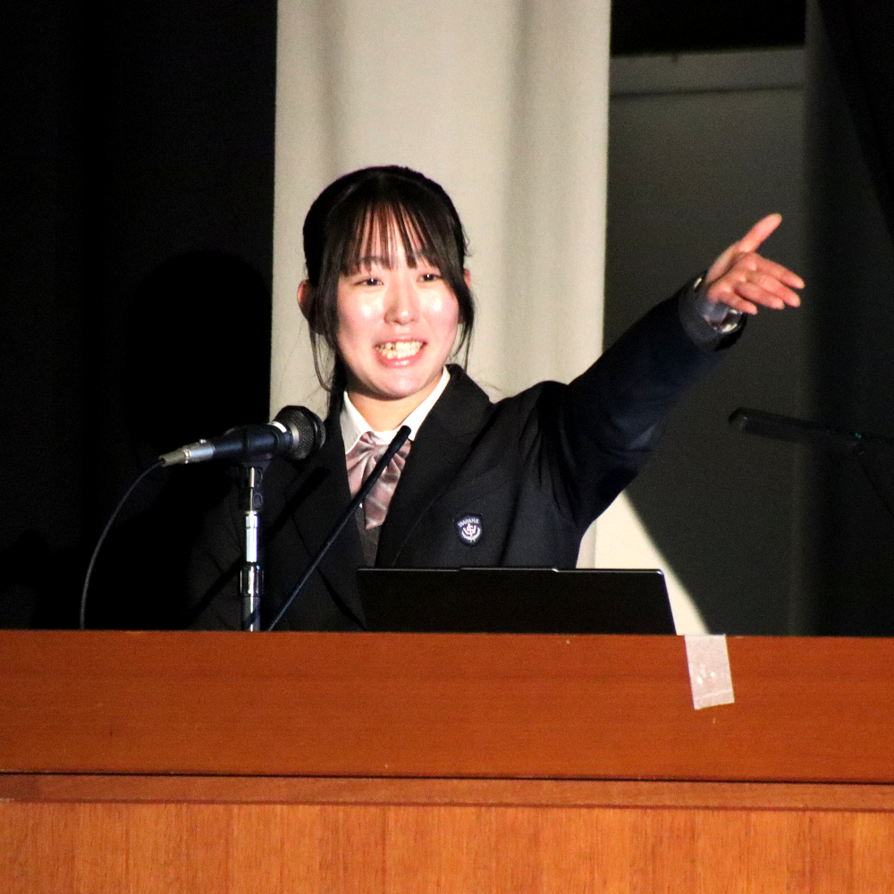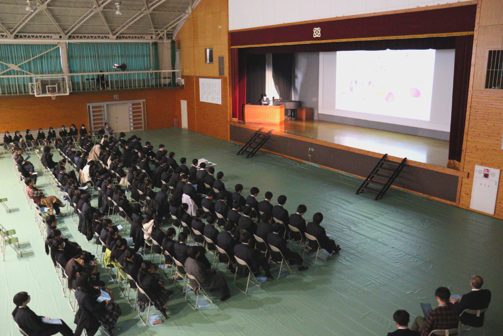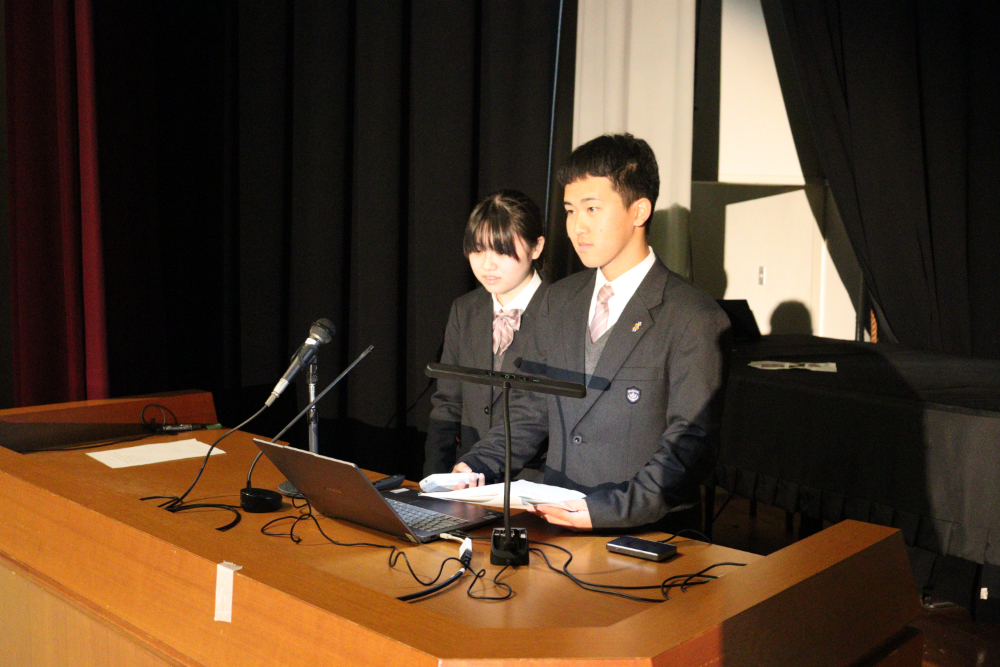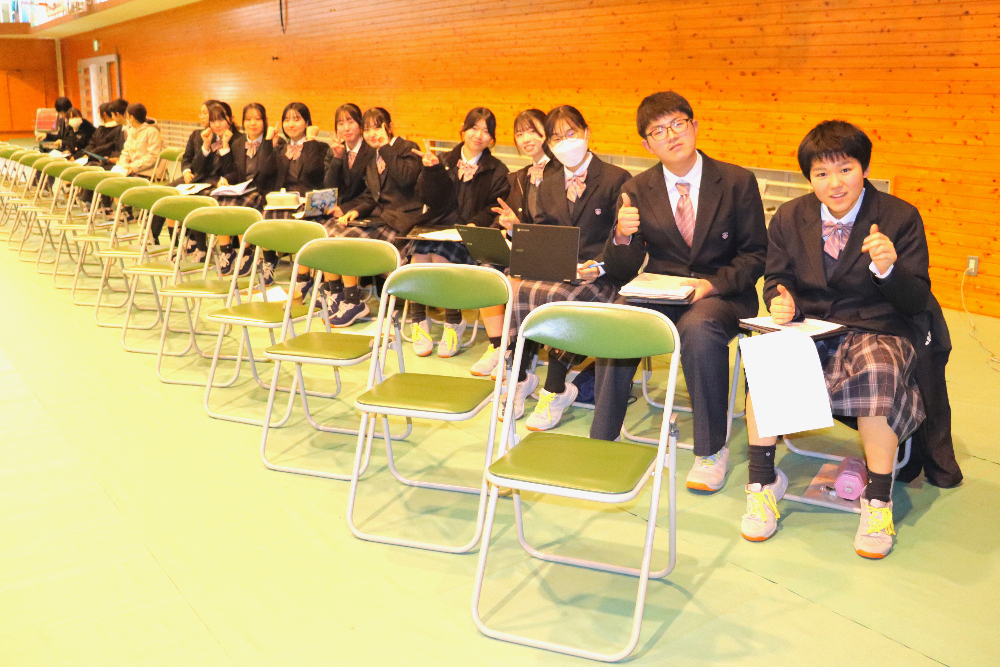 令和7年度『学習発表会』第1部 「総合的な探究の時間」発表会総合的な探究の時間 / 2025年12月18日 12月17日(水)の午後、本校体育館で、今年度の『学習発表会』第1部となる「総合的な探究の時間」発表会が行われました。 当日は1年生と2年生から選ばれた10名の代表生徒が、総合的な探究の時間に取り組んできた学習成果を発表しました。開会前、ずらりと勢揃いした精鋭たちです! 発表会が始まりました。 体育館ステージの大きなスクリーンに工夫を凝らしたプレゼンテーションが投影されています。 代表生徒の声が朗々と響いています。 ここで、発表題目の一部を御紹介しましょう。 「井原特有のもの」✕「カードゲーム」 「井原の芸術」✕「美術館を盛り上げる」 「おおかみに負けない木のおうち」(工学) 「ガムを噛むと集中力は上がるのか」(歯学) ・・・生徒ひとりひとりの興味関心そのままで実に多様です! 自分にとって興味のあること、好きなこと、時間をかけて追い求めたことを発表する代表生徒の表情をご覧下さい。 フロアから次々と質問が飛び出し、活発な意見交流が行われました。 お忙しい中、足をお運びくださった御来賓の皆さまからも声をかけていただきました。 会場準備をはじめとして、照明や受付、司会とたくさんの生徒が行事を作り上げました。 来年の1月16日(金)には、アクティブライフ井原で、『学習発表会』第2部「地域生活科」発表会が行われます。