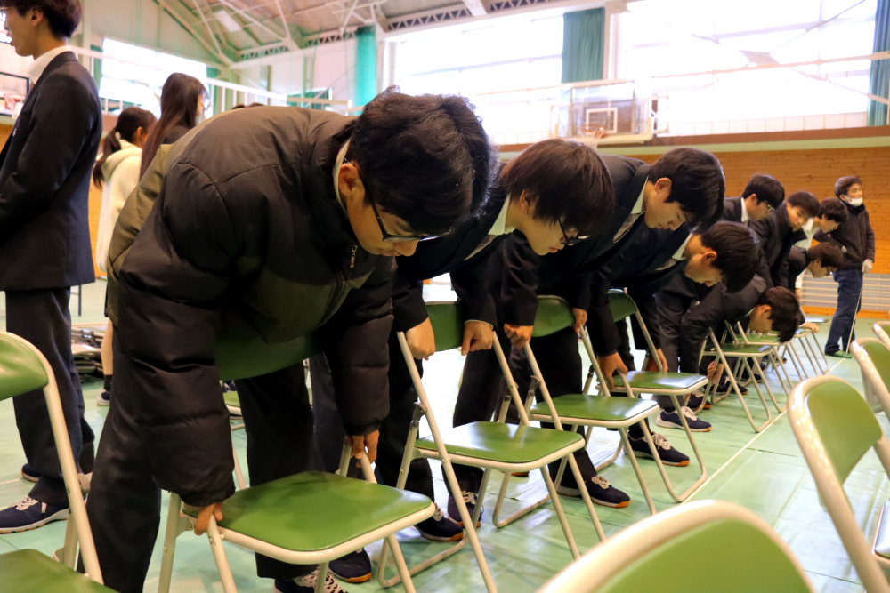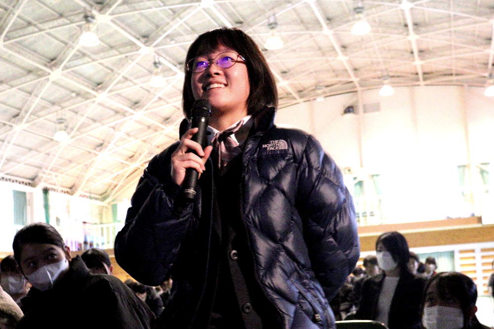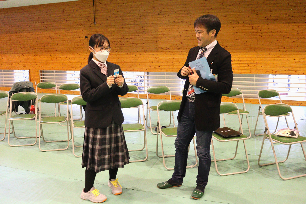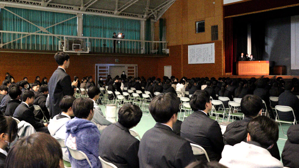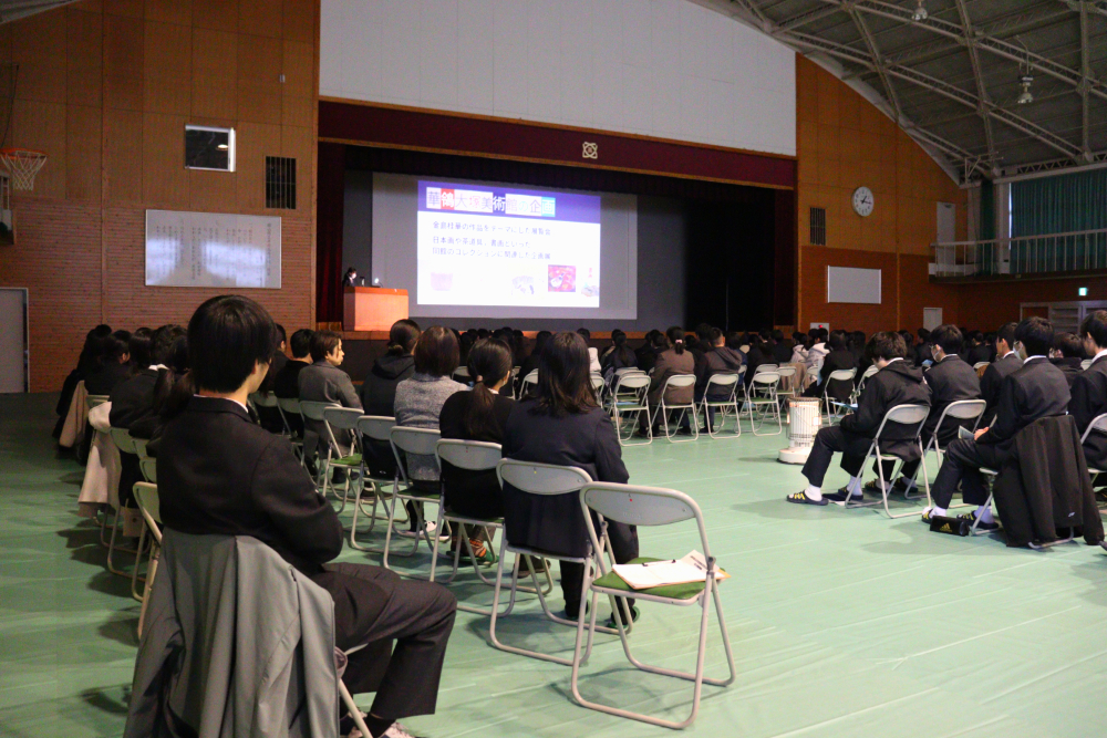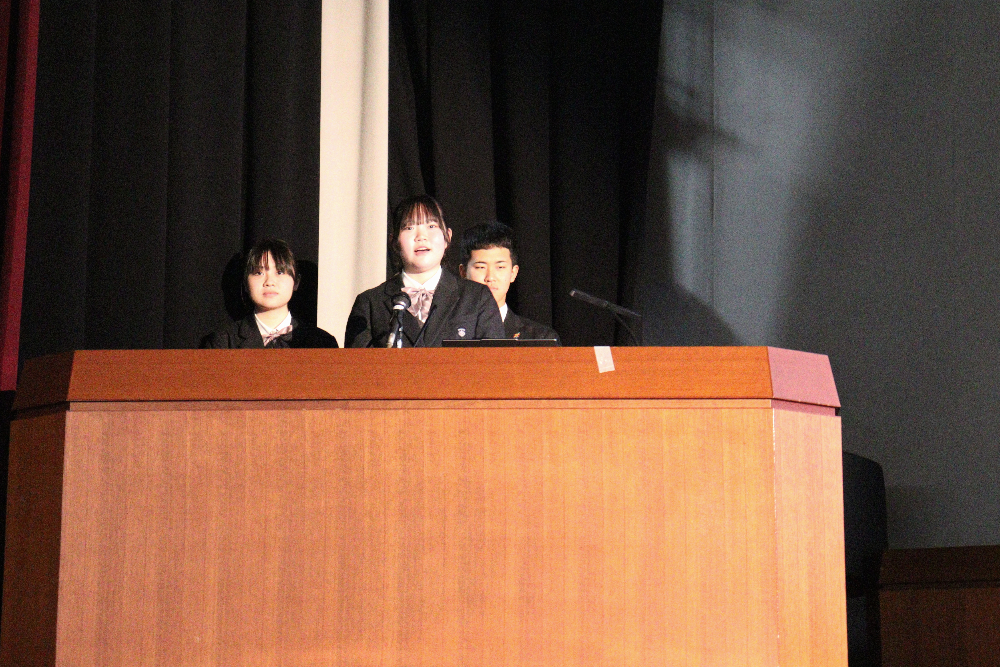 令和7年度『学習発表会』第1部 「総合的な探究の時間」発表会総合的な探究の時間 / 2025年12月18日 12月17日(水)の午後、本校体育館で、今年度の『学習発表会』第1部となる「総合的な探究の時間」発表会が行われました。 当日は1年生と2年生から選ばれた10名の代表生徒が、総合的な探究の時間に取り組んできた学習成果を発表しました。開会前、ずらりと勢揃いした精鋭たちです! 発表会が始まりました。 体育館ステージの大きなスクリーンに工夫を凝らしたプレゼンテーションが投影されています。 代表生徒の声が朗々と響いています。 ここで、発表題目の一部を御紹介しましょう。 「井原特有のもの」✕「カードゲーム」 「井原の芸術」✕「美術館を盛り上げる」 「おおかみに負けない木のおうち」(工学) 「ガムを噛むと集中力は上がるのか」(歯学) ・・・生徒ひとりひとりの興味関心そのままで実に多様です! 自分にとって興味のあること、好きなこと、時間をかけて追い求めたことを発表する代表生徒の表情をご覧下さい。 フロアから次々と質問が飛び出し、活発な意見交流が行われました。 お忙しい中、足をお運びくださった御来賓の皆さまからも声をかけていただきました。 会場準備をはじめとして、照明や受付、司会とたくさんの生徒が行事を作り上げました。 来年の1月16日(金)には、アクティブライフ井原で、『学習発表会』第2部「地域生活科」発表会が行われます。
