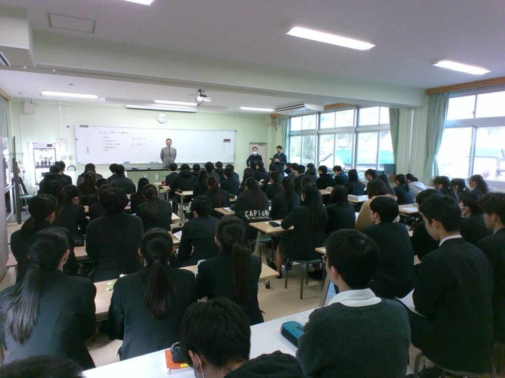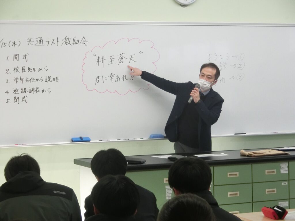 【普通科3年生】「大学入試共通テスト」激励会・下見3年生, 普通科 / 2026年1月16日 1月15日(木)6限に普通科3年生の「大学入試共通テスト」激励会が行われました。校長、学年主任、進路課長からの話をみんな真剣に話を聞いていました。ぜひとも有終の美を飾って、自分の夢に近づいてもらいたいです。 1月16日(金)に普通科3年生の該当者は「大学入試共通テスト」の下見で岡山県立大学に行きました。生徒は明日に向けて、入念に確認していました。また、全員で気合を入れて、一致団結して、明日を迎えます。明日から2日間、夢に向かって頑張れ3年生!