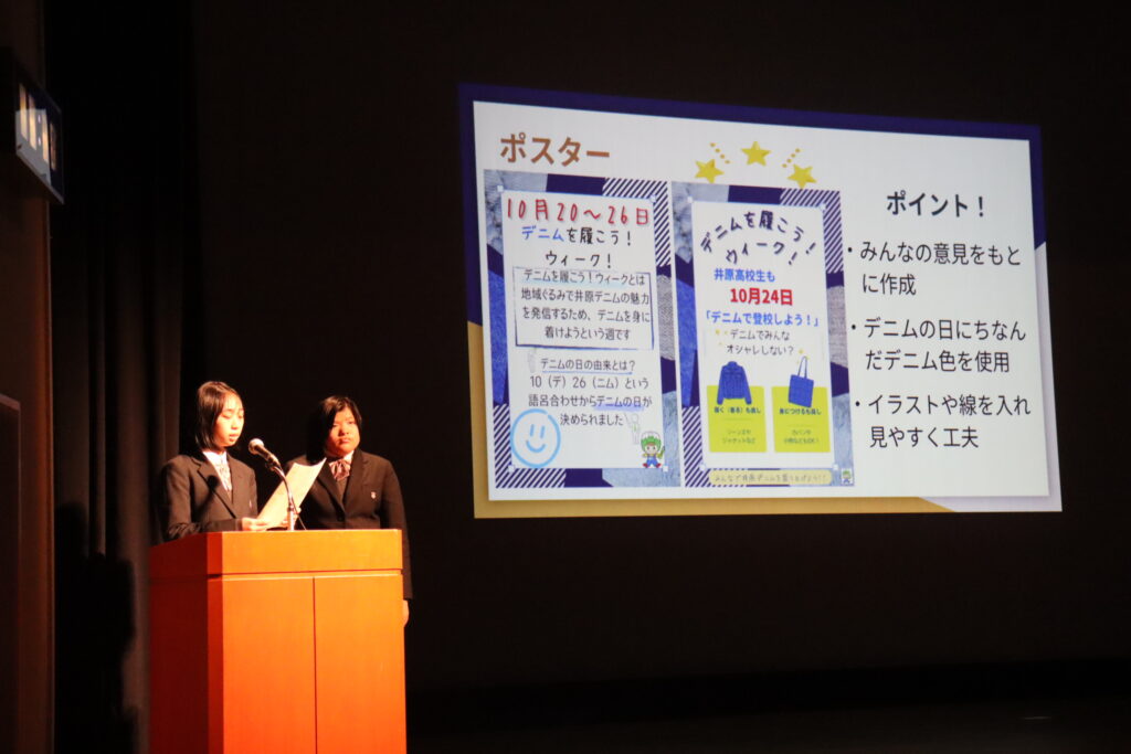 R7年度学習発表会第2部「地域生活科発表会」地域生活科 / 2026年1月22日 1月16日(金)、アクティブライフ井原にて、学習発表会第2部「地域生活科発表会」を開催しました。2年間取り組んだ、科目「地域生活」における井原デニムに関する学びや、ヒューマンライフコースにおける3分野(食物・保育・被服)の学び、グリーンライフコースの3分野(鉢花・野菜果樹・草花)の課題研究を発表しました。また、それぞれの学びの展示も行いました。生徒たちは、この日に向けて準備を重ね、発表会終了後は、充実した表情を見せていました。