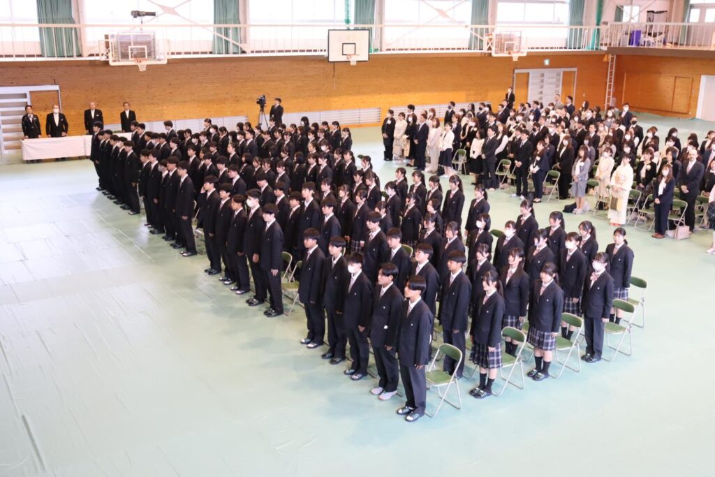 ただ今入学を許可いたしました、115名の新入生の皆さん、御入学おめでとうございます。皆さんは9年間の義務教育を終え、本日、創立123年目を迎える歴史ある本校の生徒となりました。