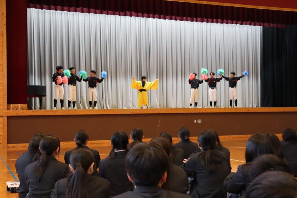 令和8年度 部紹介生徒会 / 2026年4月10日 令和8年4月10日、部活動紹介がありました。どの部活もとても魅力的で、先輩たちの発表から熱意が伝わってきました。高校生活をより充実させるためには、部活動への参加も大きな一歩だと思います。生徒会の会長・副会長からも「部活動は高校生活を変える。かけがえのない友だちが見つかる」という言葉が印象に残っています。みなさんもぜひ部活動に入って、様々なチャレンジをして、仲間と一緒に素敵な高校生活を送りましょう!