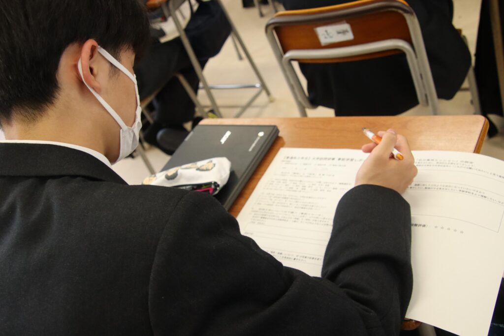 【普通科2年】大学訪問研修(事前研修)2年生, 普通科 / 2026年4月15日 令和8年4月15日(水)普通科2年生は4月17日(金)に『大学訪問研修』を行います。愛媛大学・高知大学・高知工科大学の3コースに分かれて行ってきます。 本日は、その事前研修として、当日の注意事項を聞いたり、ホームページ等を調べて事前レポートを書いたりしました。 今回、この時期に県外に行くことは初めての試みなので、様々なことを感じ取って、進路の視野を広げて欲しいです。