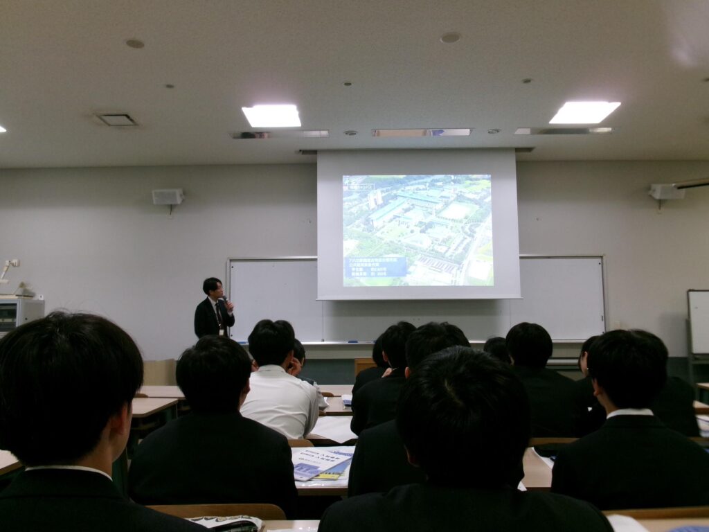 その後は講義を受け、高知工科大学ならではの5つの学群と多様な専攻について詳しく説明していただきました。「人が育つ大学」という理念のもと、自ら考え行動する力を育てる教育が行われていること印象がに残りました。